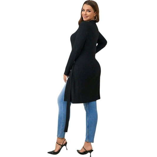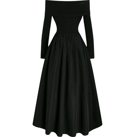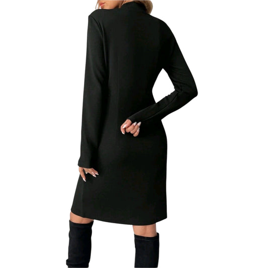 SHE fekete hosszú ujjú lefelé szabott maxi ruha