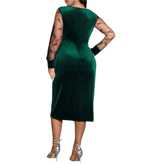 ElfogyottSHE smaragdzöld bársony midi ruha