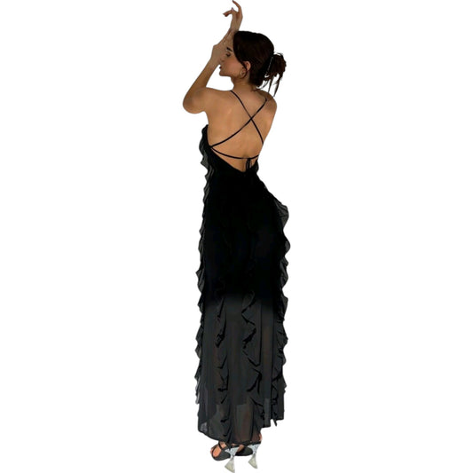ElfogyottSHE fekete fodros maxi ruha