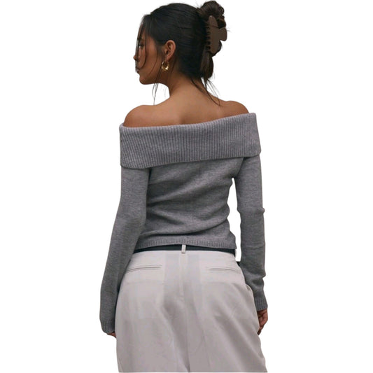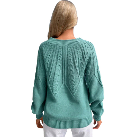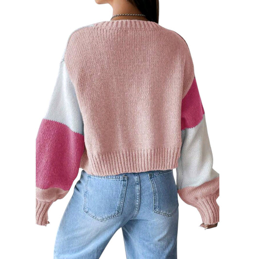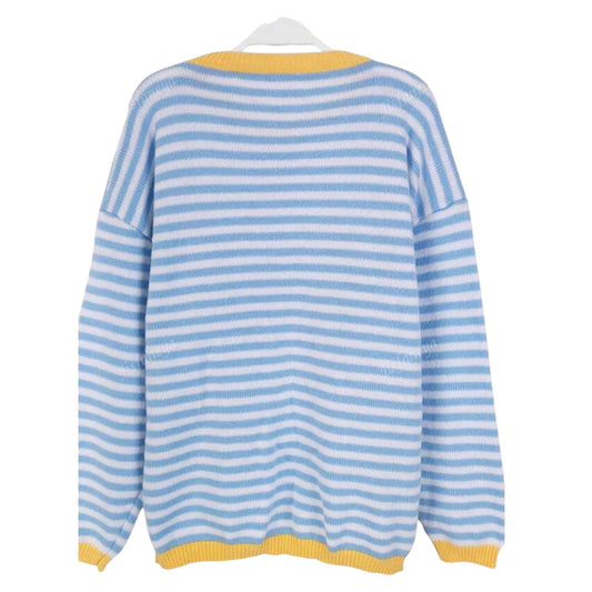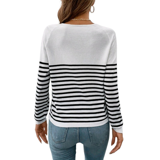 SHE fehér és fekete csíkos V-nyakú pulóver
