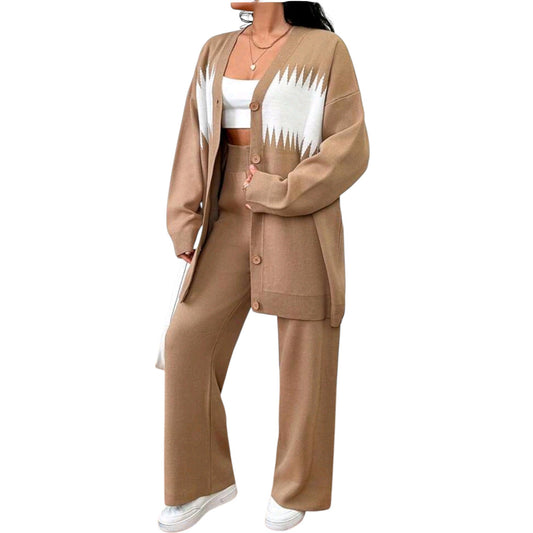 SHE fekete, bézs és barna chevron mintás maxi ruha