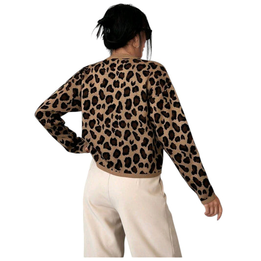 SHE barna leopárd mintás kötött kardigán