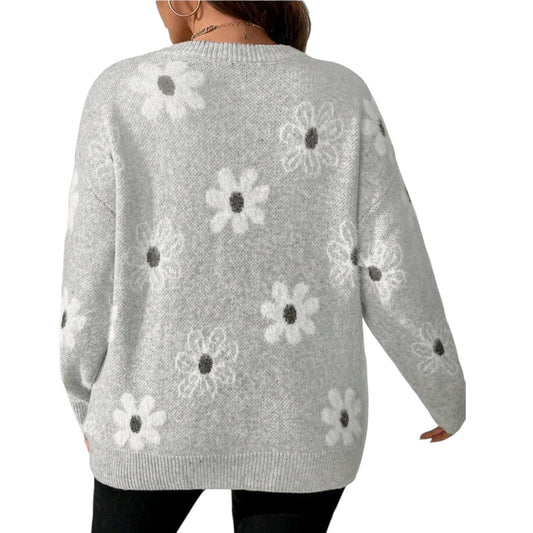 SHE fehér virágos kötött pulóver