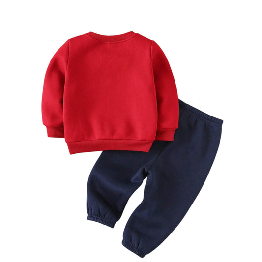 SHE piros-kék nyomtatott gyerek pulóver szett