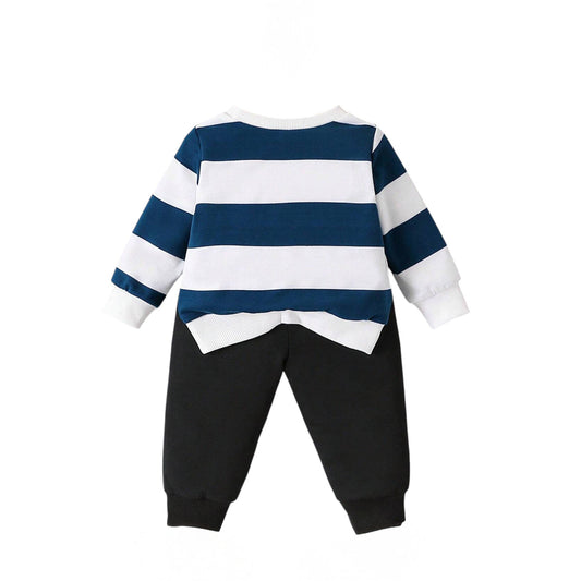 SHE fekete-fehér csíkos póló fekete kantáros rövidnadrággal szett