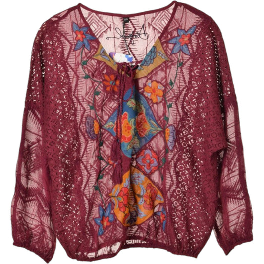 DESIGUAL bordó horgolt virágos megkötős blúz