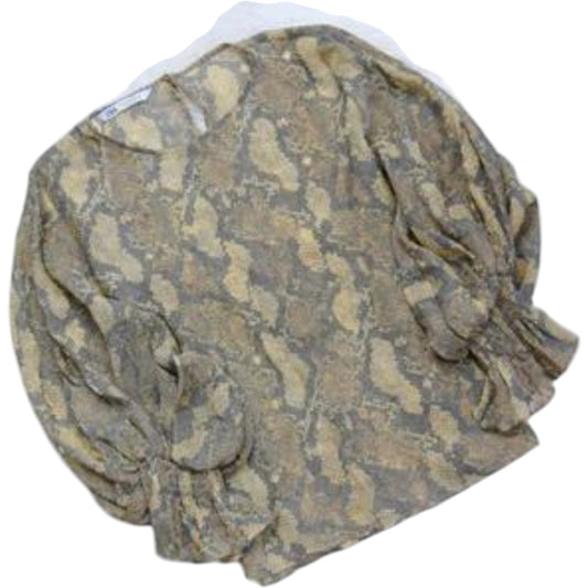 ZARA bézs állatmintás puffos ujjú blúz