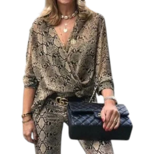 ZARA barna állatmintás átlapolós blúz