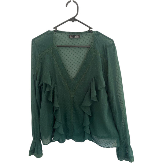 ZARA sötétzöld fodros átlátszó blúz