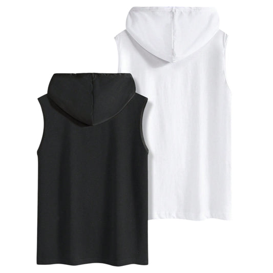 SHE fekete-fehér ujjatlan kapucnis pulóver szett