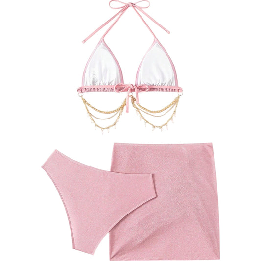ElfogyottSHE rózsaszín bikini szett szoknyával