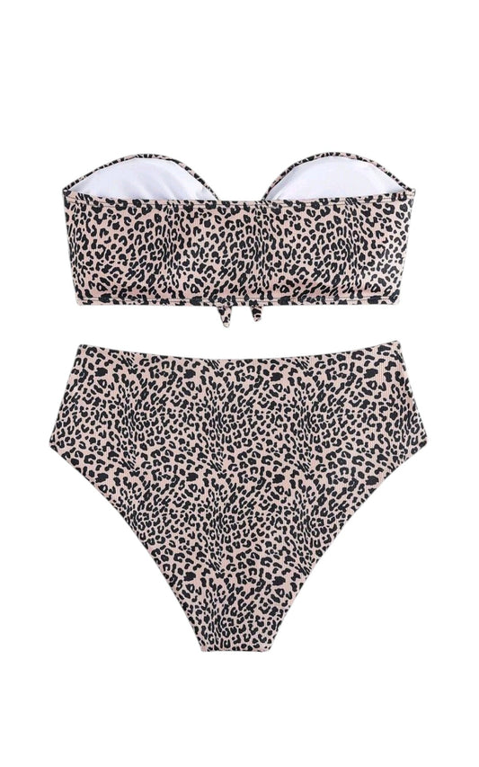 SHE bézs párducmintás pántnélküli magas derekú bikini