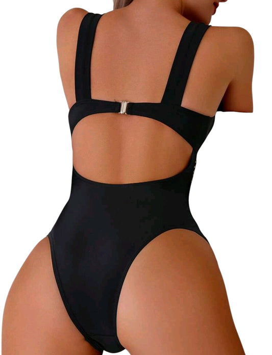 SHE fekete arany szövött pántos egyrészes fürdőruha