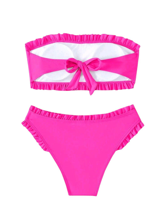 SHE rózsaszín oldalt kötős egyrészes fürdőruha
