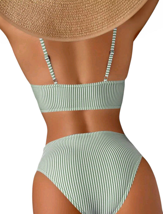 SHE zöld-fehér csíkos fodros pántú bikini szett