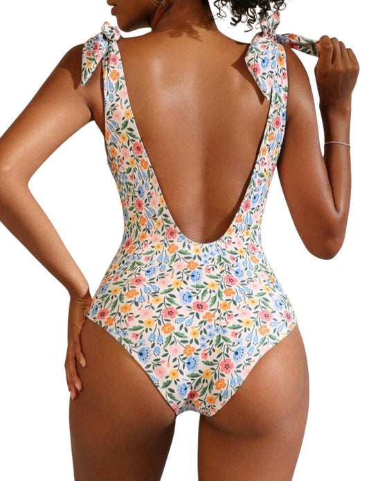 SHE fehér virágmintás megkötős pántú egyberészes fürdőruha