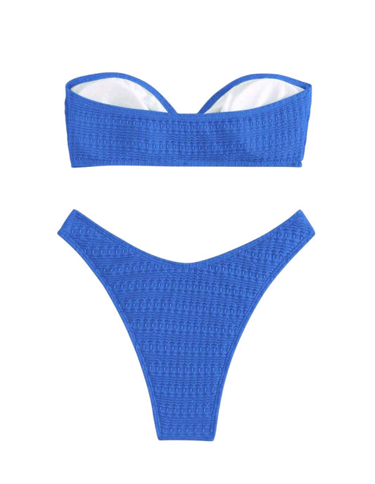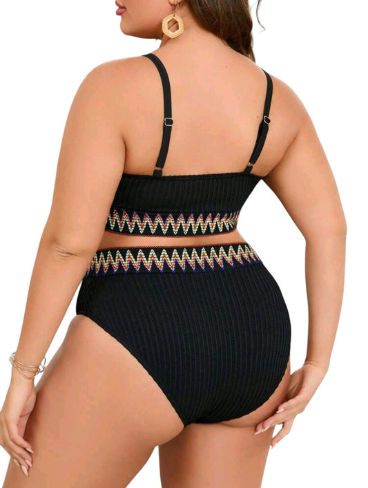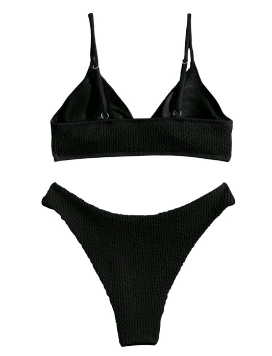 SHE fekete hímzett szegélyes bordázott bikini szett