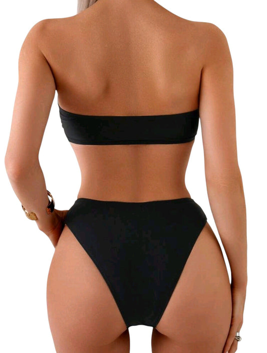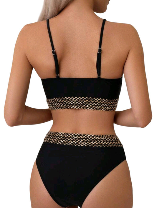 SHE fekete kontraszt szegélyes magas derekú bikini szett
