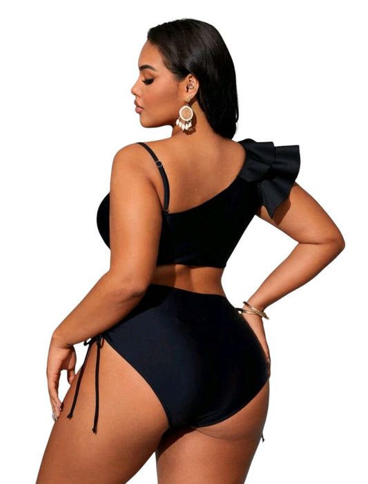 ElfogyottSHE fekete félvállas fodros bikini szett