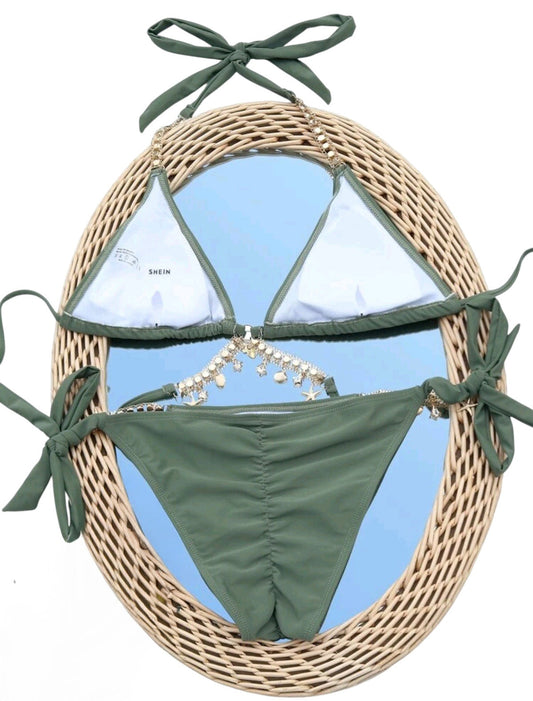 ElfogyottSHE olívazöld láncos díszes bikini szett