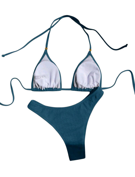 SHE zöld kéttónusú átlapolt kivágott bikini szett
