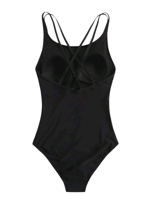 SHE fekete keresztpántos hátú egyberészes fürdőruha