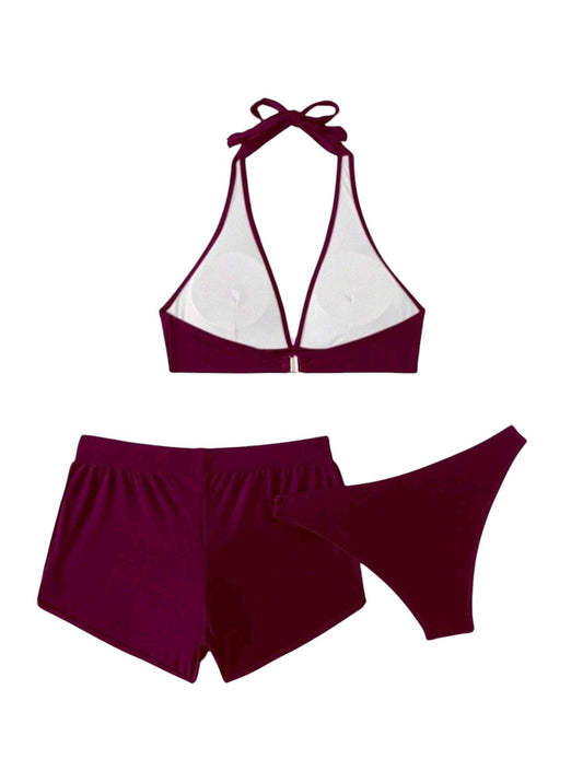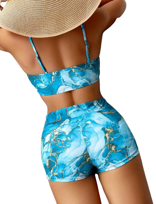 SHE zöld márványmintás háromrészes bikini szett szaronggal