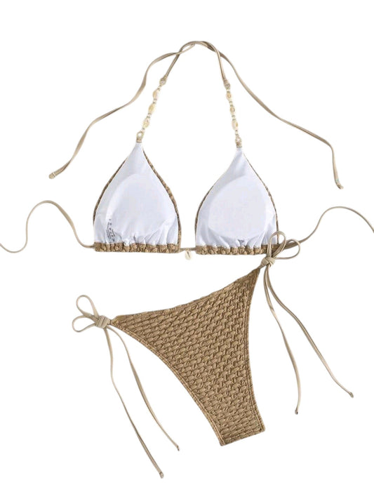 SHE krém texturált fonott szélű bikini szett