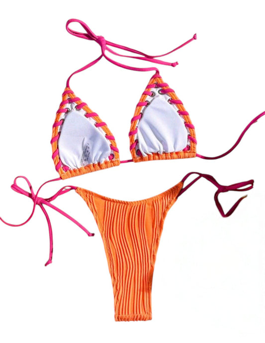 SHE narancs texturált fonott szélű bikini szett