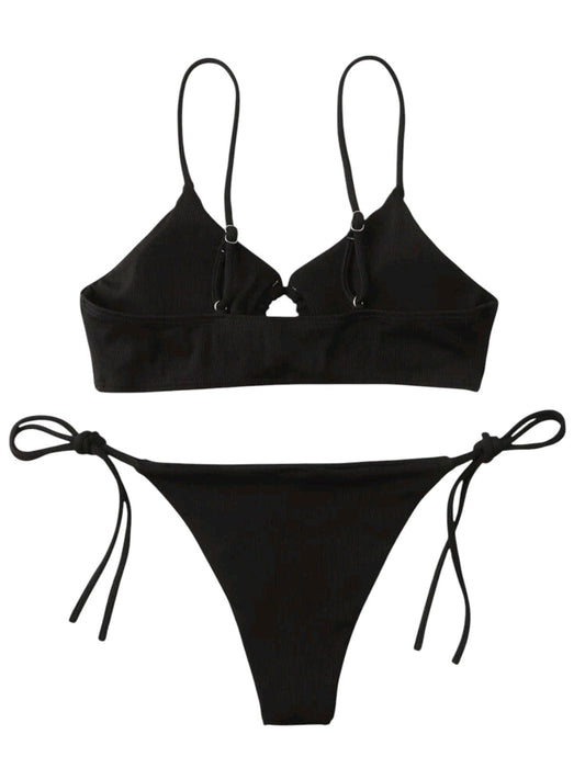 SHE fekete bordázott megkötős bikini szett