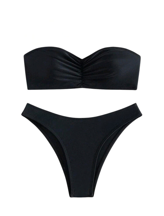 ElfogyottSHE fekete ráncolt bandeau bikini szett