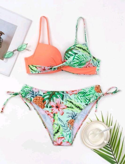 SHE rózsaszín virágmintás háromrészes bikini szett