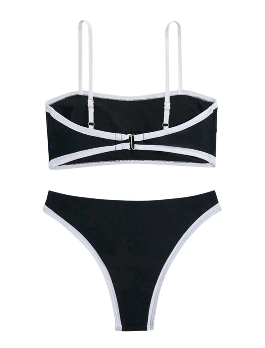 SHE fekete kontraszt szegélyes kétrészes bikini