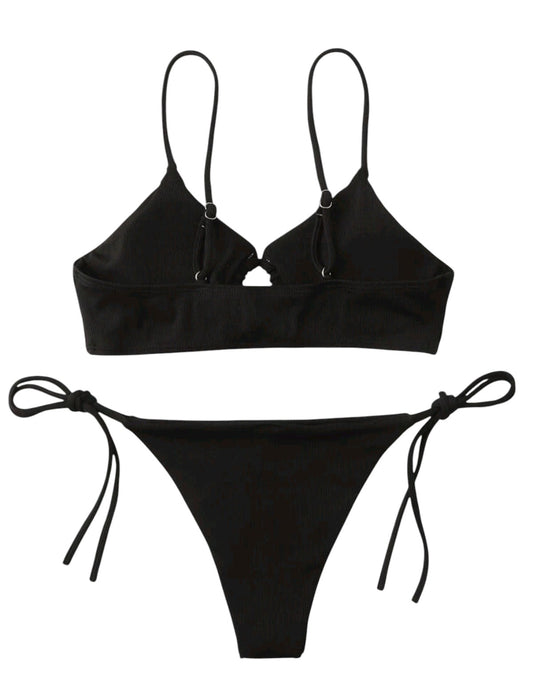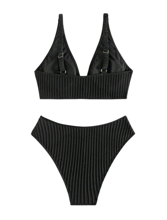 ElfogyottSHE fekete bordázott V-kivágású bikini