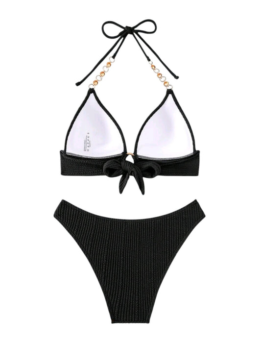 SHE piros kagylódíszes megkötős kétrészes bikini