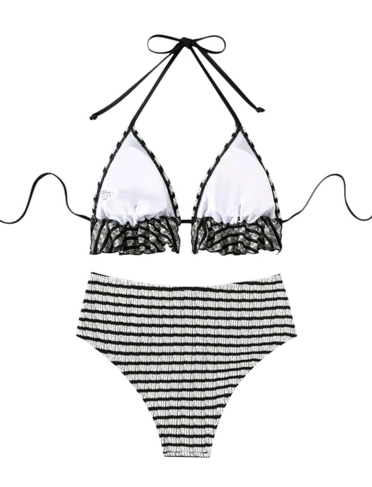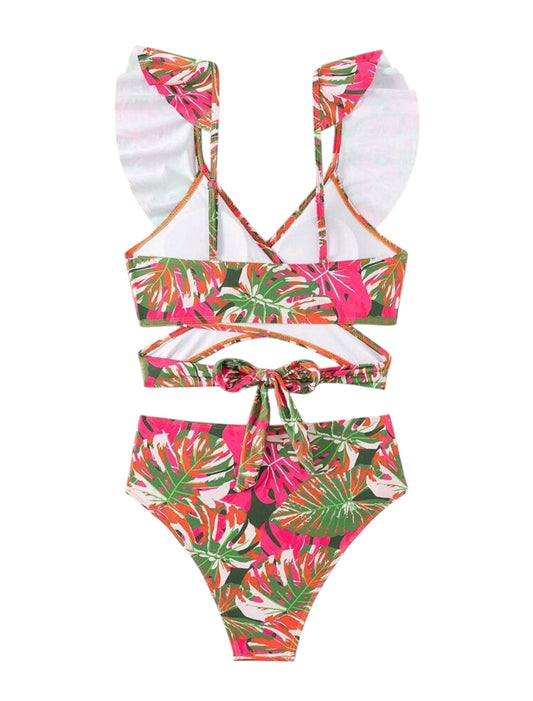 SHE trópusi mintás fodros magasderekú kétrészes bikini