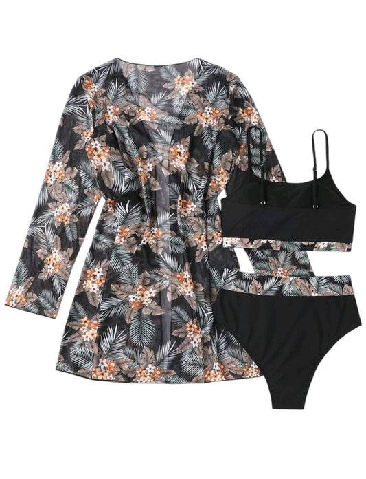 SHE fekete magasderekú fürdőruha szett kardigánnal