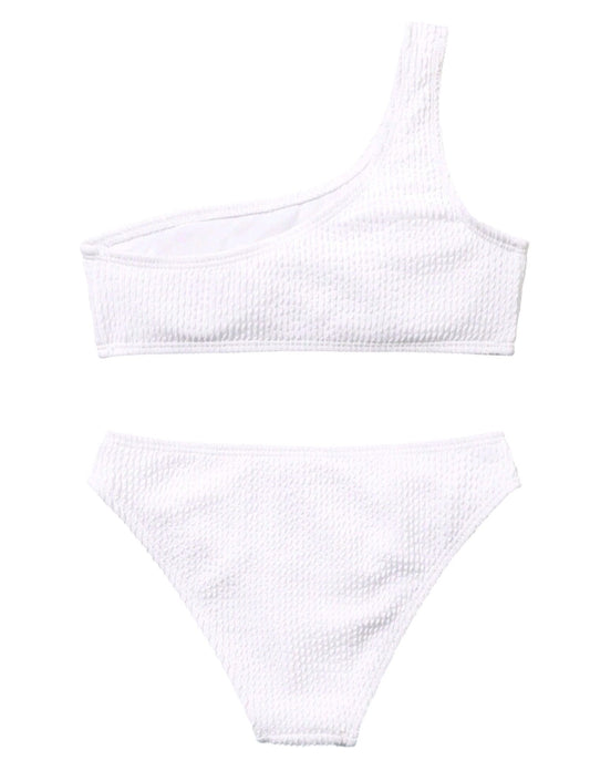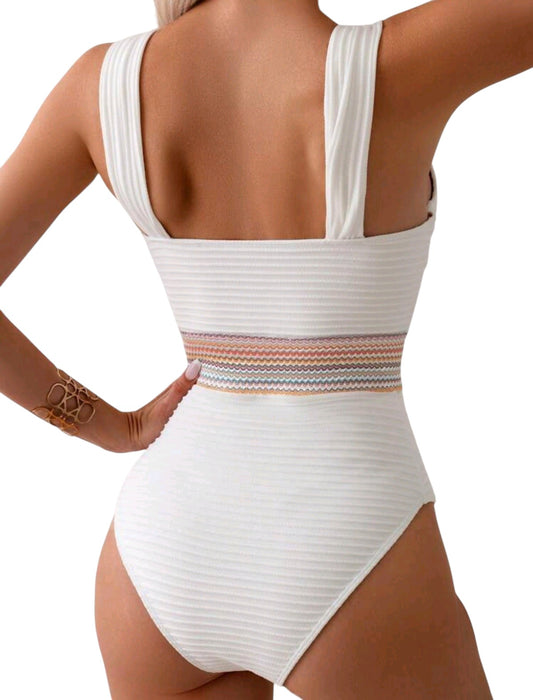 SHE fehér bordázott csavart egyrészes fürdőruha