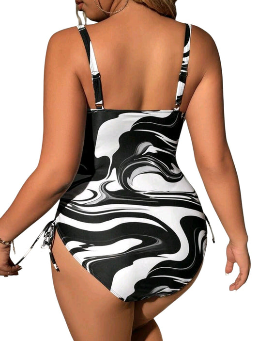 SHE fekete-fehér márványmintás egyrészes fürdőruha