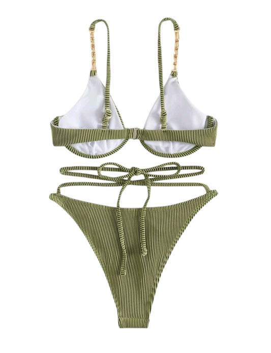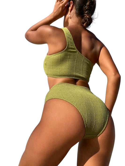 SHE olívazöld egyvállú fűzős kétrészes bikini