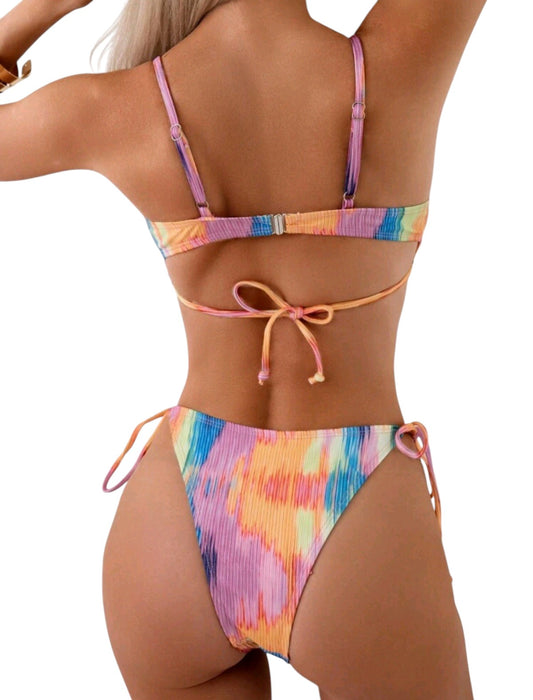 SHE lila texturált magasderekú pánt nélküli kétrészes bikini