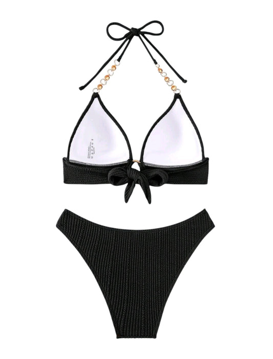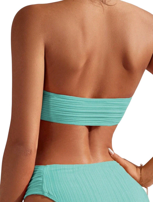 SHE türkiz texturált pánt nélküli kétrészes bikini