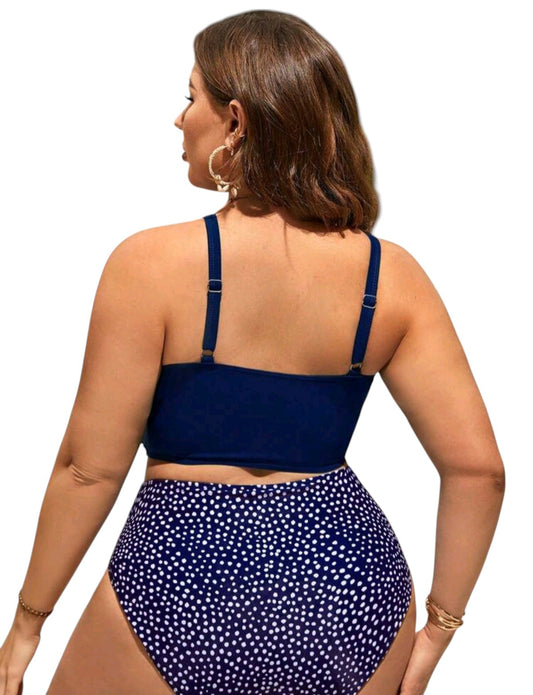 SHE sötétkék pöttyös magasderekú plus size kétrészes bikini