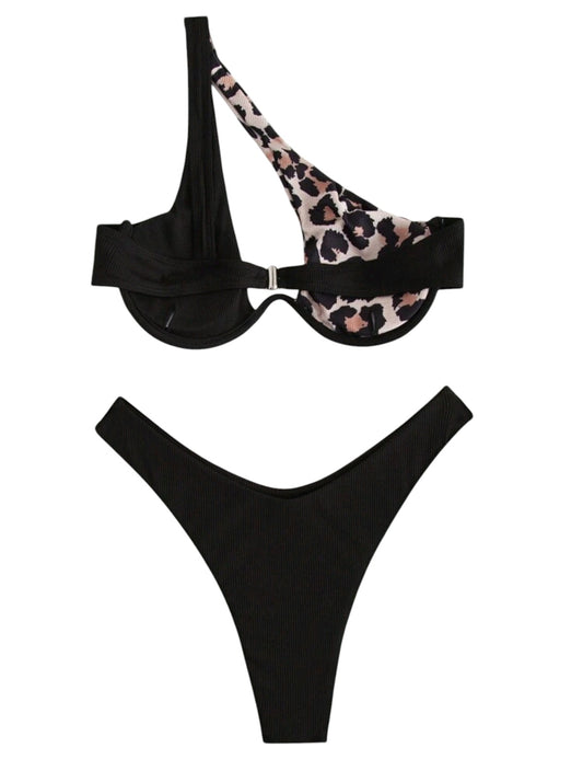 SHE fekete leopárdmintás aszimmetrikus kétrészes bikini
