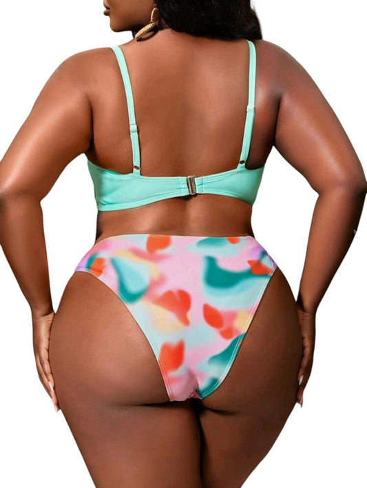 SHE türkiz márványmintás magasderekú kétrészes bikini