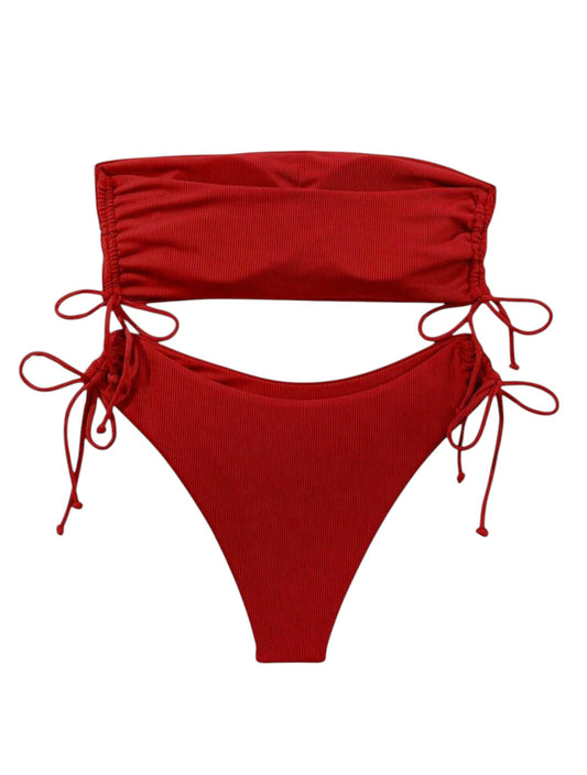 SHE piros pánt nélküli megkötős kétrészes bikini