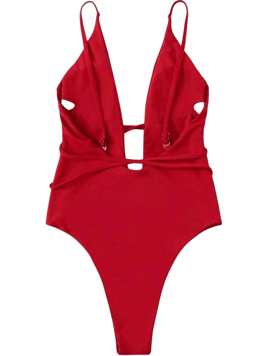 ElfogyottSHE piros fűzős egyrészes fürdőruha