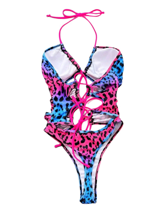 SHE színes állatmintás kivágott egyberészes fürdőruha