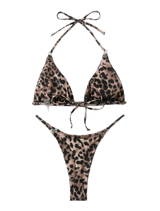 SHE barna állatmintás háromszög bikini szett