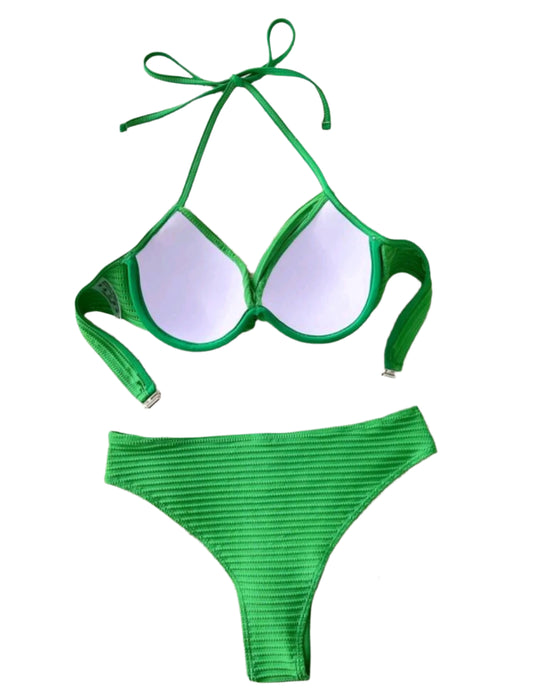SHE zöld bordázott merevítős bikini szett
